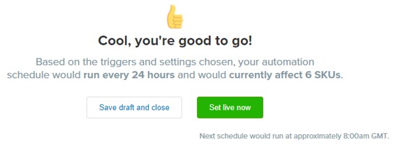 We hope this article has helped to show you the benefit of using Automations for your Amazon business. They are a great way to keep your prices competitive with minimal effort. When starting off, we recommend that you set up one automation only and observe how things are working. You’ll be able to see how many SKUs your chosen automation will affect before setting it live.
